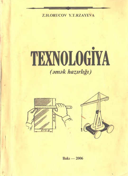 Orucov, Z.N. Texnologiya (əmək hazırlığı) [mətn]: İbtidai sinif müəllimləri üçün dərs vəsaiti / Z. N. Orucov, Y. T. Rzayeva; red. S. M. Quliyav; rəy.: H. Həşimov, Ş. Ağayev, P. A. Əliyeva; Azərbaycan Respublikası Təhsil Nazirliyi Azərbaycan Dövlət Pedaqoji Universiteti. — Bakı, 2006. — 253 s.; 21 sm. — <URL:https://azpedagogy-my.sharepoint.com/:b:/g/personal/kitabxana_adpu_edu_az/EbJBFbGRMFtAsUg6xaIbZQAB4wtwnCwgXwdvLputwFc3ew?e=zPSOu8>.