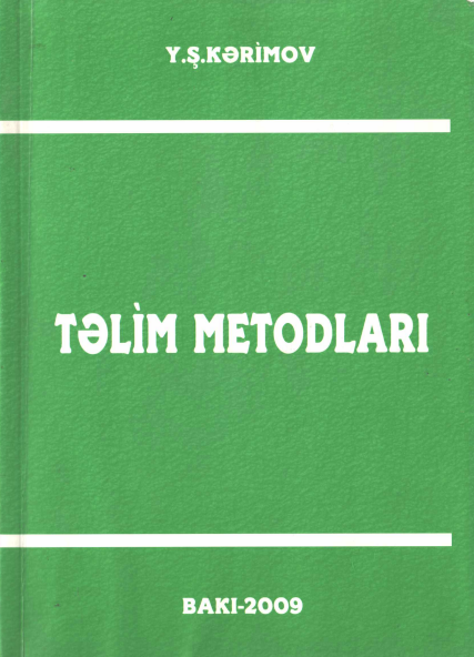 Kərimov, Y.Ş. Təlim metodları [mətn]: Dərs vəsaiti / Y. Ş. Kərimov. — Bakı: RS Poliqraf, 2009. — 279 s.; 20 sm. — <URL:https://azpedagogy-my.sharepoint.com/:b:/g/personal/kitabxana_adpu_edu_az/EZigEXA29uRJqP1D3VFcyPMByEqU-7FM6uYhHGkf45NGwQ?e=b8i7k4>.
