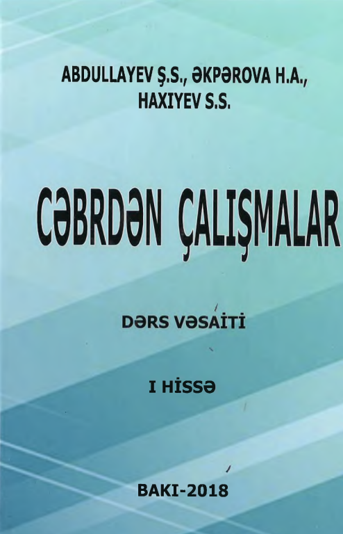 Abdullayev, Şəmsəddin Sabhət o. Abdullayev Ş.S., Əkpərova H.A., Haxıyev S.S. Cəbrdən çalışmalar. I hissə. 2018: (Dərs vəsaiti) / Ş. S. Abdullayev; Ş. S. Abdullayev.