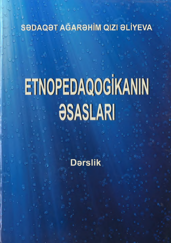 Əliyeva, Sədaqət Ağarəhim. Etnopedaqogikanın əsasları [mətn]: dərslik. — Bakı, 2016. — 238 s.; 21sm — <URL:https://azpedagogy-my.sharepoint.com/:b:/g/personal/kitabxana_adpu_edu_az/EXcwwIgWJ3RGtvMEiC8gAoABCCbr3EyfiYo6PJxHo4UvSw?e=NKqILJ>.