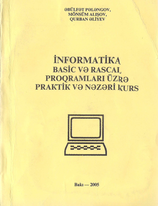 Pələngov, Əbülfət. İnformatika: Basic və Pascal proqramları üzrə praktik və nəzəri kurs [mətn.]: dərs vəsaiti / Ə Pələngov, M Alışov, Q Əliyev; red. Z.Ə Tağıyeva, rəy. Ə.M Məmmədov. — Bakı: ADPU, 2005. — 193 s.; 19 sm — <URL:https://azpedagogy-my.sharepoint.com/:b:/g/personal/kitabxana_adpu_edu_az/EbKD8w8Afa9Oikyz4kv5aPQBhUY7NidKYgWPoauoFJ7Qtg?e=ffY0Oc>.