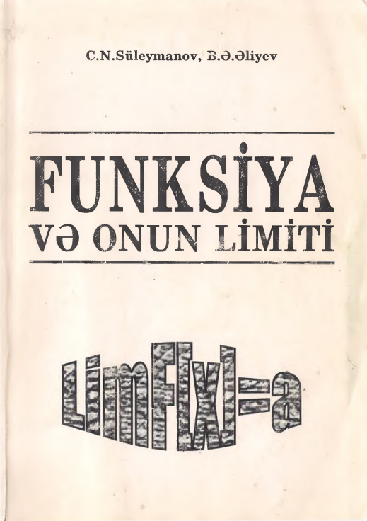 Süleymanov, C.N. Funksiya və onun limiti. [mətn] / C. N. Süleymanov, B. Ə Əliyev; elmi red. Q. Ə Orucov, rəy. V. M Musayev; Azərbaycan Respublikası Təhsil Nazirliyi. — Bakı: "Çaşıoğlu", 2002. — 244 s.; 20 sm. — <URL:https://azpedagogy-my.sharepoint.com/:b:/g/personal/kitabxana_adpu_edu_az/EfAcMzSzRnJKt080D_snU1wBPOX-c97IQnjcdxtSPcO_Uw?e=9RVRfG>.