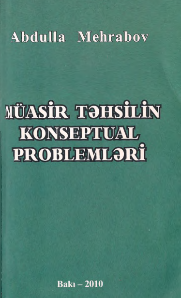 Mehrabov, Abdulla. Müasir təhsilin konseptual problemləri [mətn] / A. Mehrabov; elmi. red. Ə. Abbasov; rəy.: A. Abbasov, R. Əliyev. — Bakı: Mütərcim, 2010. — 516 s.; 22 sm — <URL:https://azpedagogy-my.sharepoint.com/:b:/g/personal/kitabxana_adpu_edu_az/EcYiWq1Phf5KlK2R2SvYeMoBLRb4wT4FVt2_gHKJPIeMWQ?e=oTMejW>. — непосредственный. Текст