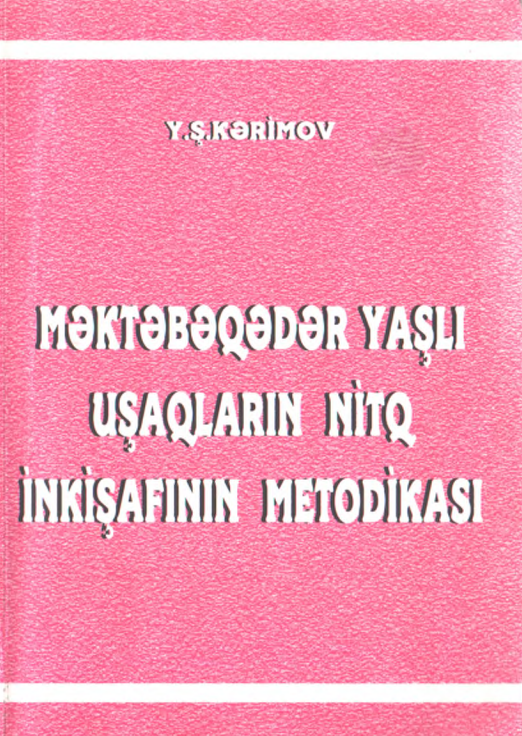 Kərimov, Y.Ş. Məktəbəqədər yaşlı uşaqların nitq inkişafının metodikası [mətn]: dərs vəsaiti / Y. Ş. Kərimov; rəy. L. C. Əmrahlı, red. E. Kərimova. — Bakı: RS Poliqraf MMC, 2009. — 319 s.; 21 sm — <URL:https://azpedagogy-my.sharepoint.com/:b:/g/personal/kitabxana_adpu_edu_az/EQYM0guqMV9HsUMoyPDuVZMB9_moSRwqu1Pil68ERhV6-Q?e=ynq9Uj>. — непосредственный. Текст