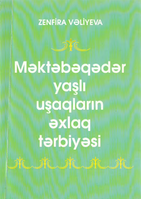 Vəliyeva, Zenfira. Məktəbəqədər yaşlı uşaqların əxlaq tərbiyəsi [mətn] / Z. Vəliyeva; red. S. Quliyev; rəy.: N. Rüstəmova, Y. Rzayeva. — Bakı, 2012. — 136 s.; 21 sm. — <URL:https://azpedagogy-my.sharepoint.com/:b:/g/personal/kitabxana_adpu_edu_az/EXk3Mo5o_6xMujMB-liqA7oBsHcNaPbx41JsorW8Uqym2Q?e=jda6cB>.