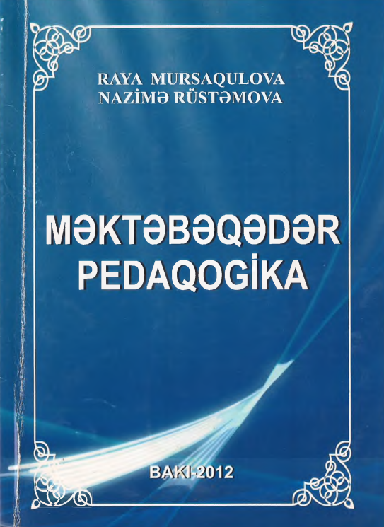 Mursaqulova, Raya. Məktəbəqədər pedaqogika [mətn]: dərslik / R. Mursaqulova, N. Rüstəmova; red. Ə. Paşayev; rəy. K. Məmmədov [et al.]. — Bakı, 2012. — 432 s.; 22 sm. — <URL:https://azpedagogy-my.sharepoint.com/:b:/g/personal/kitabxana_adpu_edu_az/Ef2gwpf7MO9KjA0UOdFvh3QBHUUWwxG6cv-dyJrE7EUtiw?e=ZDw5Ue>.